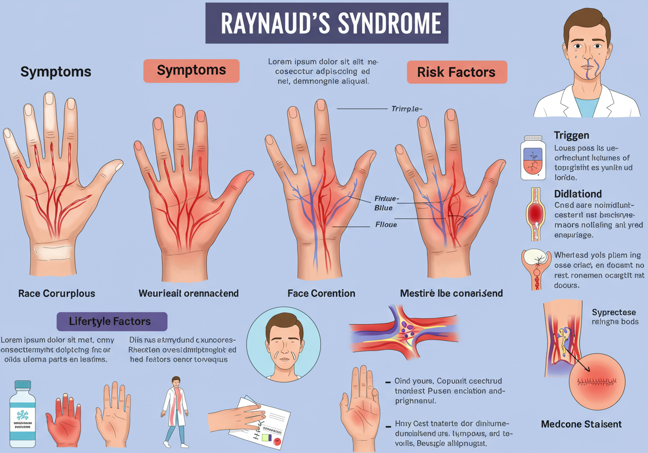 레이노증후군은 손가락이나 발가락의 혈관이 과도하게 수축하면서 일시적으로 혈류가 차단되는 말초혈관 질환입니다. 추위나 스트레스를 받았을 때 주로 나타나며, 손가락이나 발가락 끝이 갑자기 창백하게 변하고, 이후 푸르게 혹은 붉게 변하는 '3단계 색 변화'가 특징입니다.