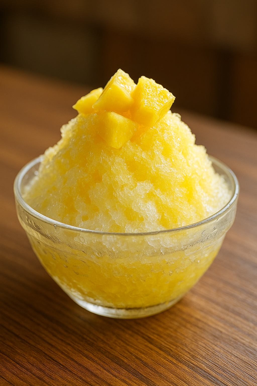 - 자전거 종점 근처 ‘파인애플 파라다이스’의 수제 파인애플 빙수(850엔)