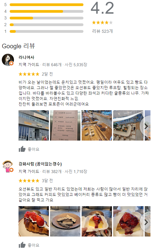 바다 시원히 보이는 넓고 전망좋은 맛난 베이커리 카페