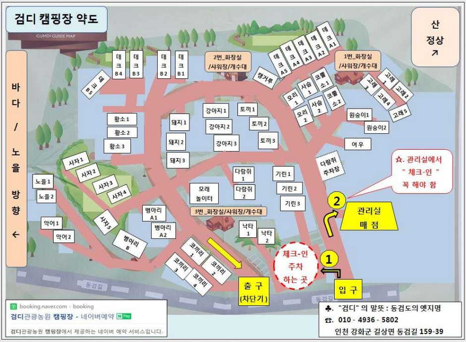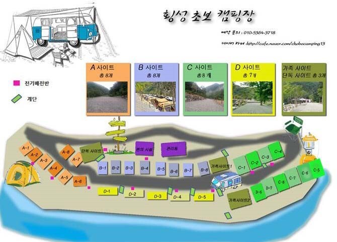 시설 : 전기, 와이파이, 장작판매, 온수, 놀이터, 운동시설